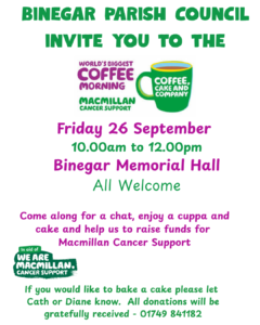 It is with great sadness that Binegar Parish Council has learned of the death of HM Queen Elizabeth ll and on behalf of the residents of Binegar and Gurney Slade would like to express our deep sorrow and send our condolences to the Royal Family.